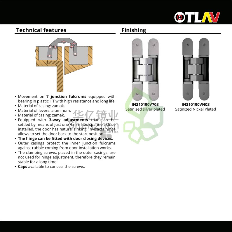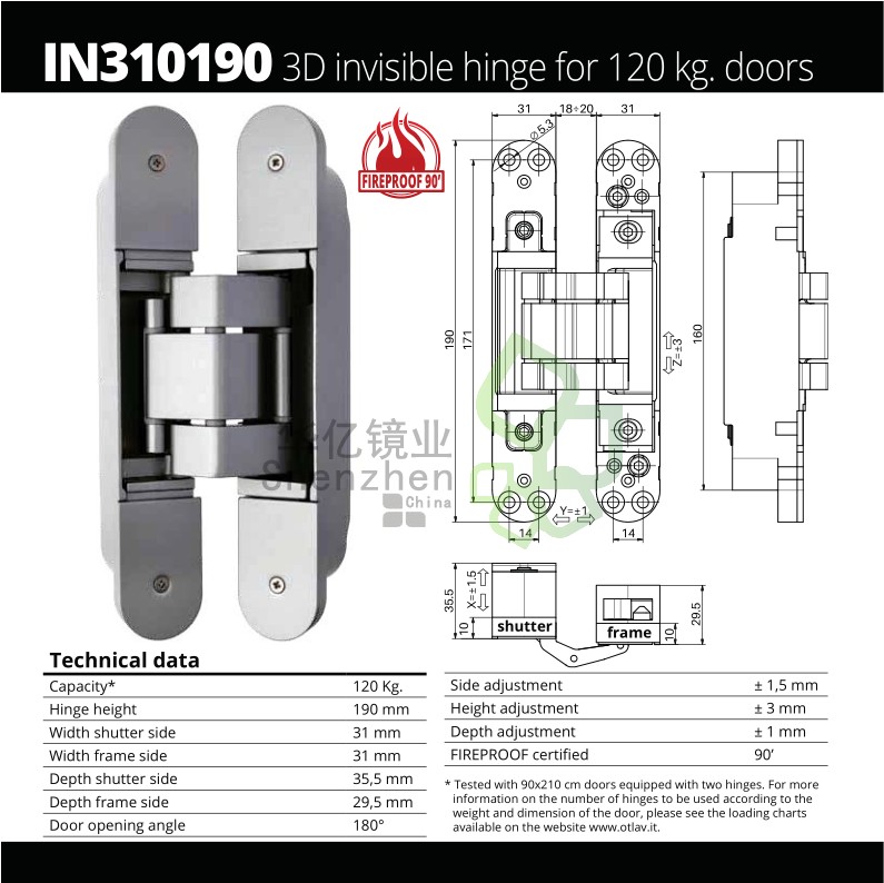 Italy OTLVA concealed door hinge 120KG 60KGotlav invisact IN310190