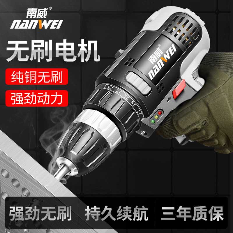 Nanwei brushless electric drill Rechargeable hand drill Small pistol drill Lithium electric drill Multi-function household electric screwdriver electric turn