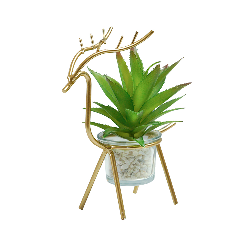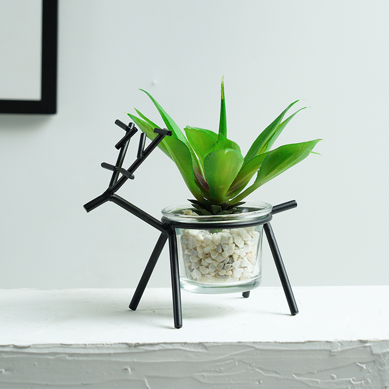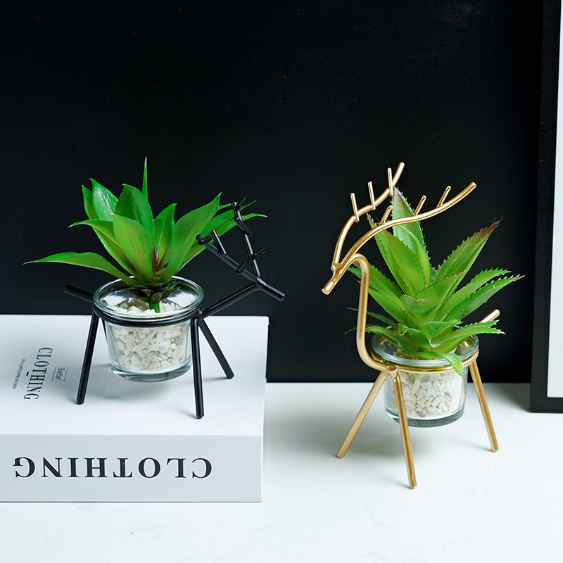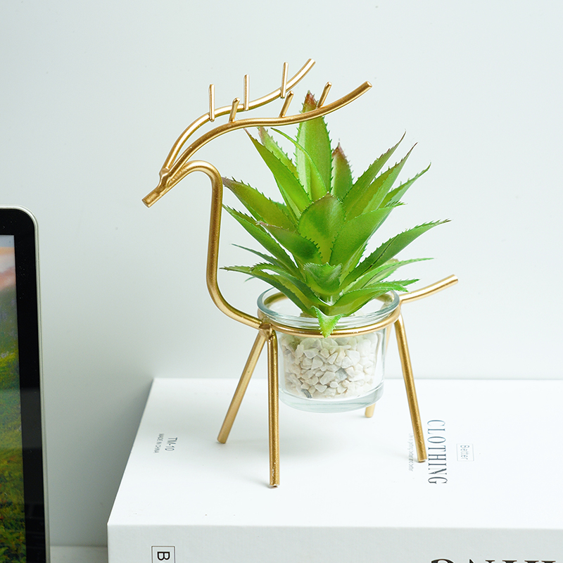 Nordic light luxury creative simple modern Wrought iron deer desktop decoration fake fleshy flower pot ornaments small crafts