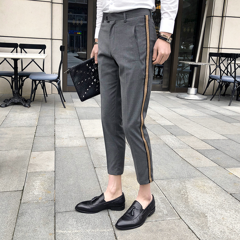 Strip pants men summer trend ninety-pants men business English wind mens small feet tight casual pants