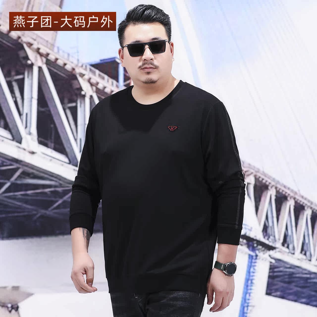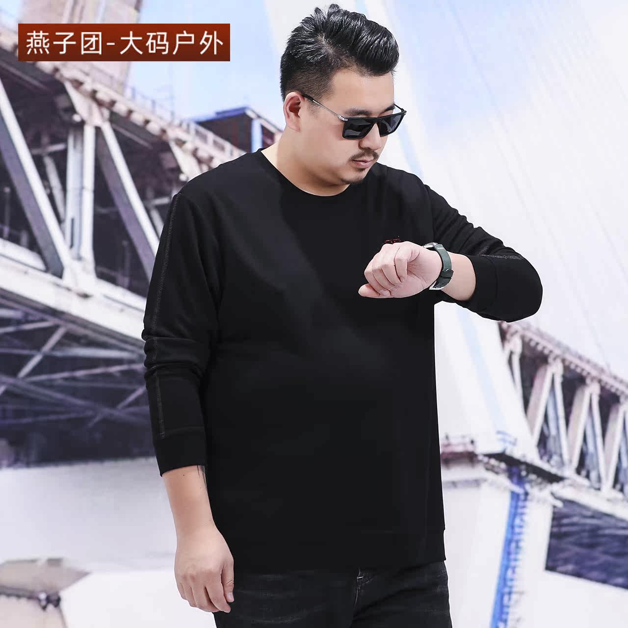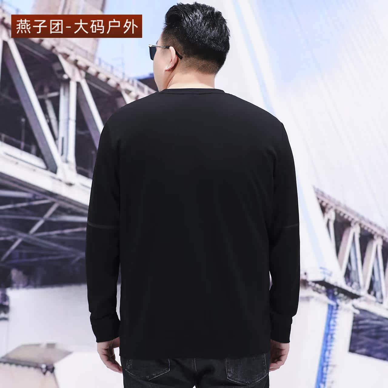 Spring and autumn outdoor sports leisure long-sleeved thick cotton T men's round neck pullover T-shirt loose plus size fat guy top