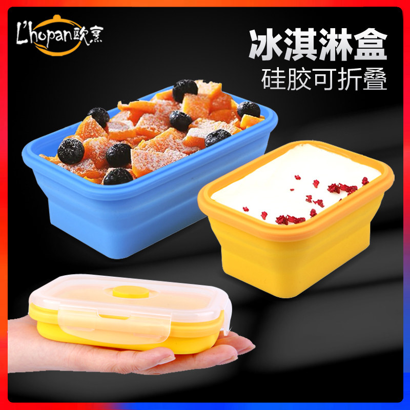 Lhopan Silicone Ice Cream Box Dig Ball Spoons Foldable Ice Cream Container Ice Cream moulds Home Freezers-Taobao