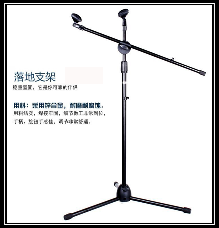 Practical professional type floor-to-ceiling microphone stand with double Chuck bracket selling and singing live microphone stand