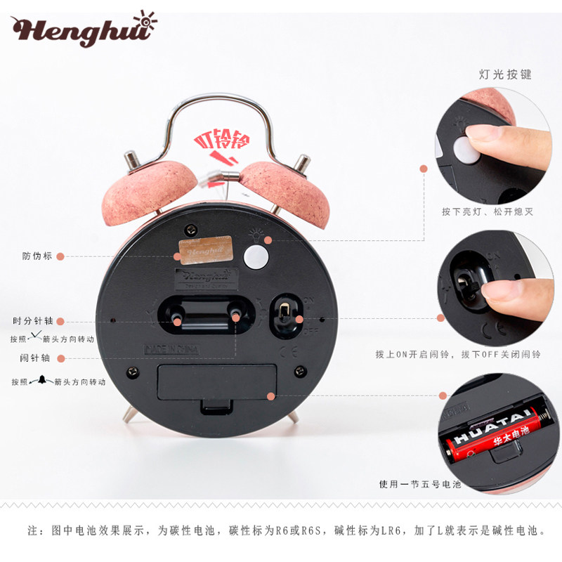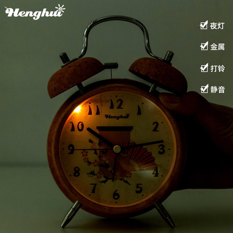 Henghui mute small alarm clock creative students with bedroom headboard oversized sound alarm bells minimalist fashion children's night light