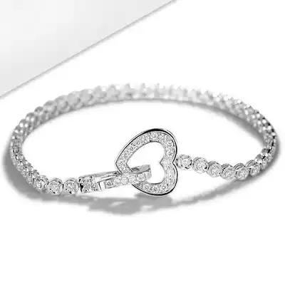 18k gold love diamond bracelet full diamond female luxury bracelet set with heart-shaped diamond bracelet bracelet full diamond H white SI small flaw