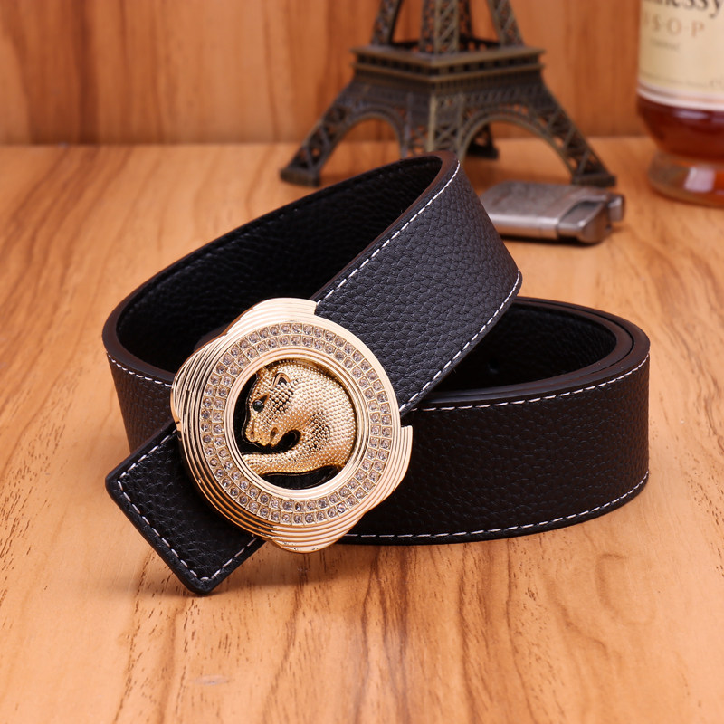 Inch 5 Water Drill Belt Business Men Lychee Striped Belt 100 Hitch Men Smooth Buckle Leopard Subhead Genuine Leather Casual Pants Strap