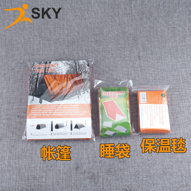 Orange Emergency blanket Orange Sleeping bag Orange Tent 1 blanket 1 sleeping bag 1 tent(more cost-effective)