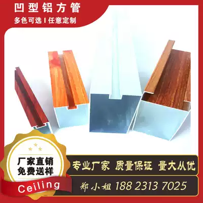 Groove aluminum square tube Aluminum alloy square pass suspended ceiling manufacturer Aluminum square pass profile square pass partition wood grain color square tube