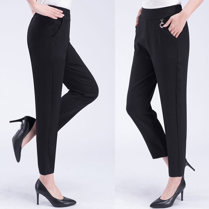 New middle aged mother Spring summer season linen pants for older people large size and high waist pants casual 9 Pants Temperament