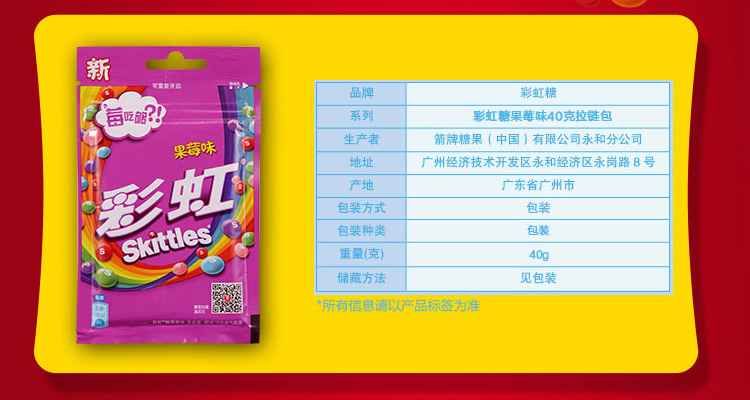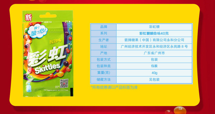 Arrow RAINBOW SUGAR 40g BAGGED ZIPPED ZIPPER BAG ORIGINAL FRUIT ACID STIFF BERRY TASTE CHILD CANDY NET RED SMALL SNACKS-TAOBAO