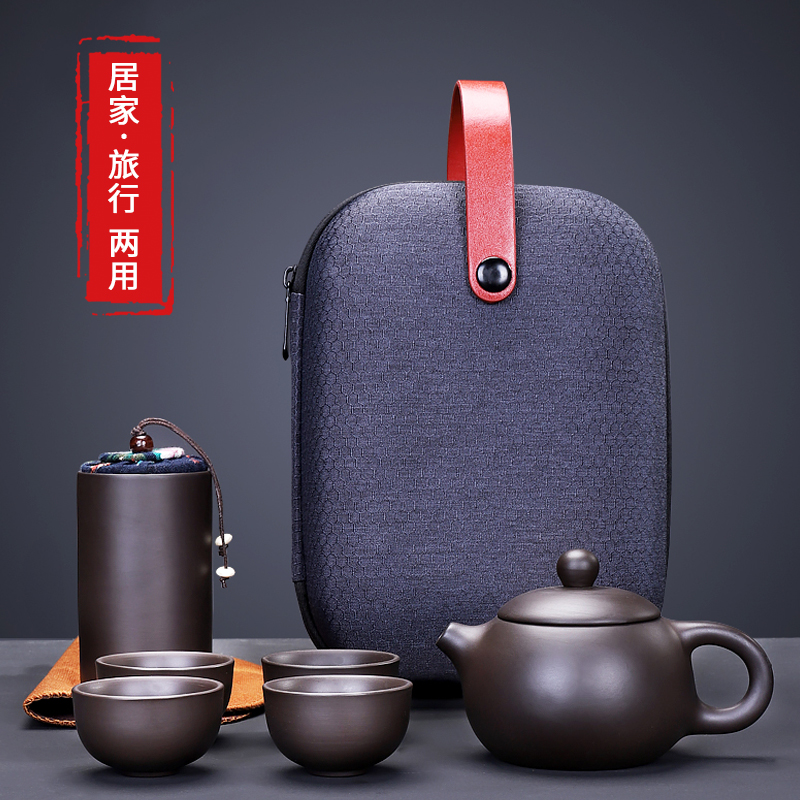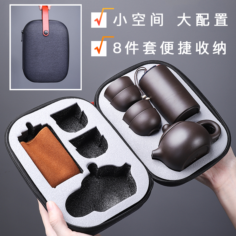 (national standard detection) true purple sand handmade travel tea set 1 pot 4 cups send tea towel tea leaf jars (8 pieces of cover)
