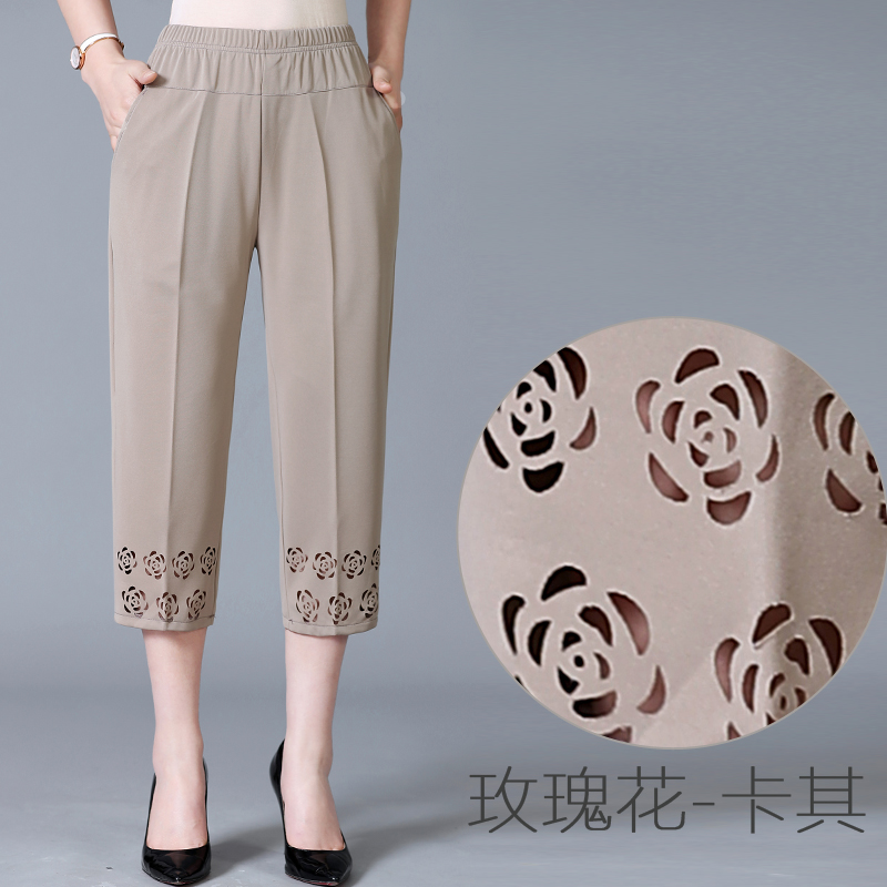 Summer thin old lady old lady's seven-pants mother-in-law, high waist casual loose Grandmother straight tube pants for older women