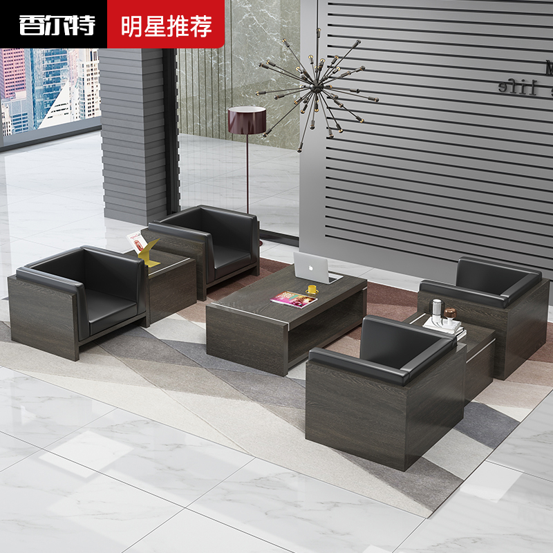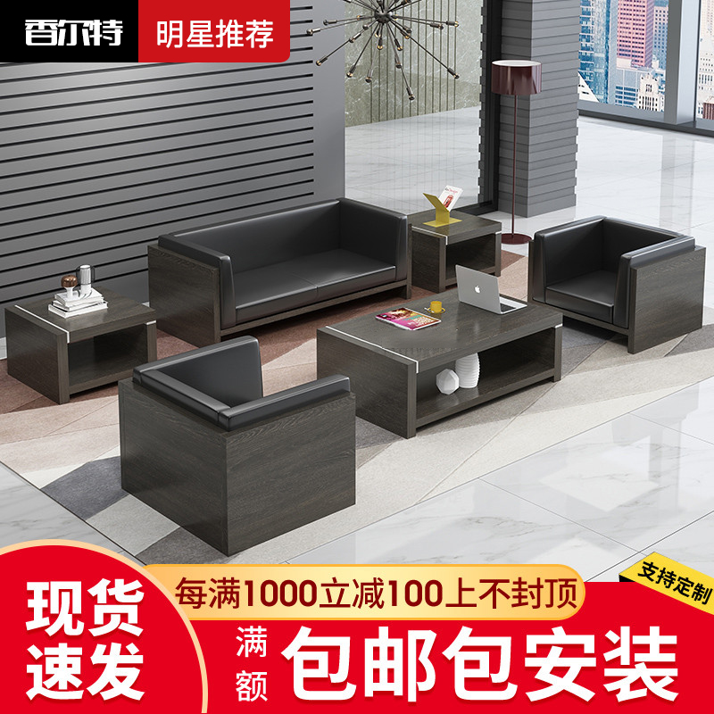 Shanghai office sofa tea table combination minimalist modern day guest area business reception room real leather sofa trio position