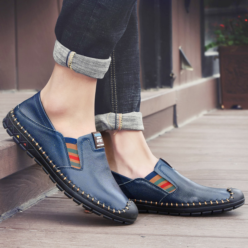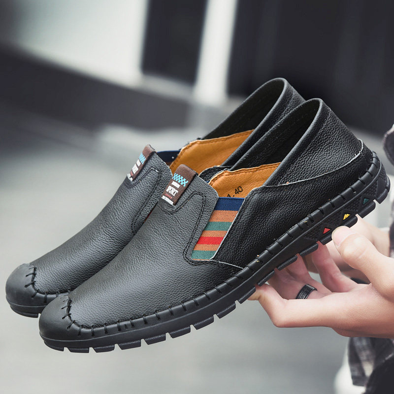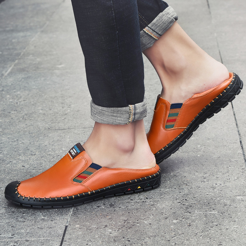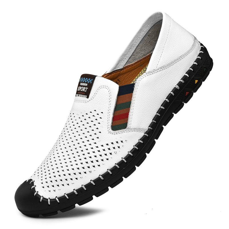 Leather shoes men's summer breathable genuine leather one foot pedal hollowed-out soft bottom soft leather sloth shoes white thin and casual leather sandals