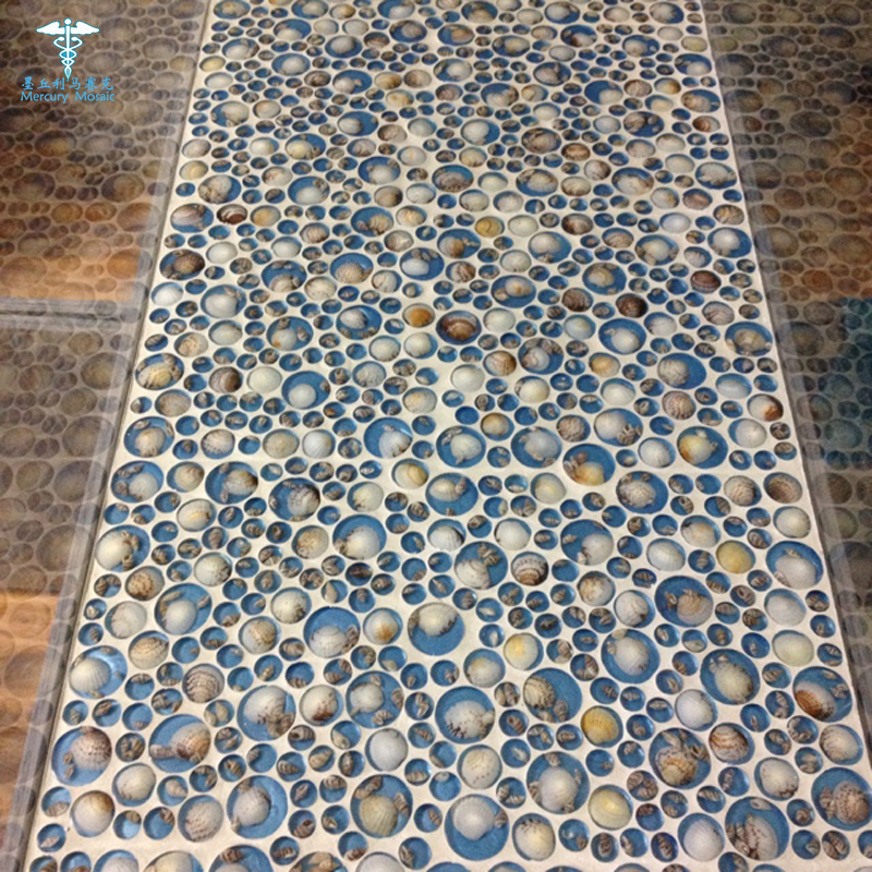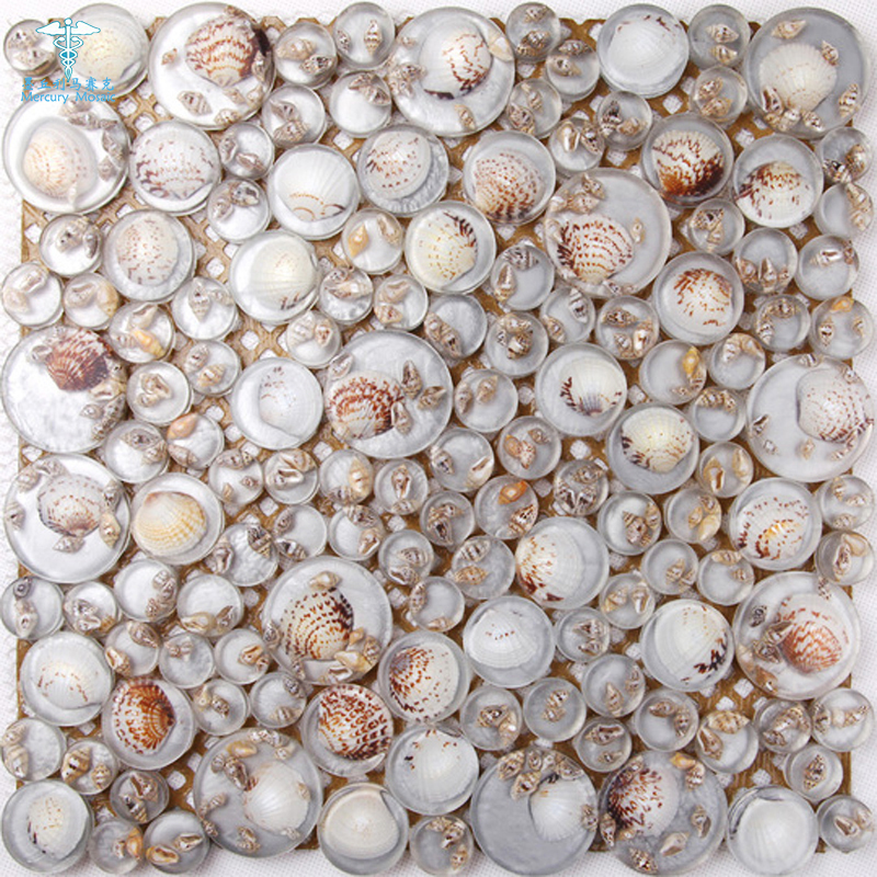 Round blue red Mediterranean shell mosaic Powder room Bathroom wall sticker Resin personalized tile building materials