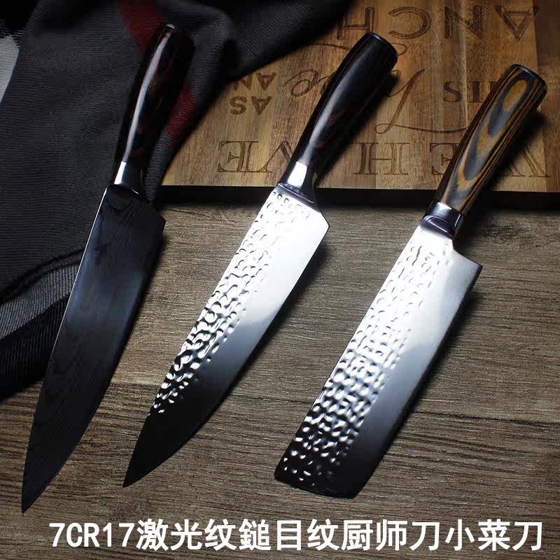Laser fishbone pattern chef knife laser beach pattern chef knife laser River pattern small kitchen knife hammer eye pattern kitchen knife black color wood handle small kitchen knife