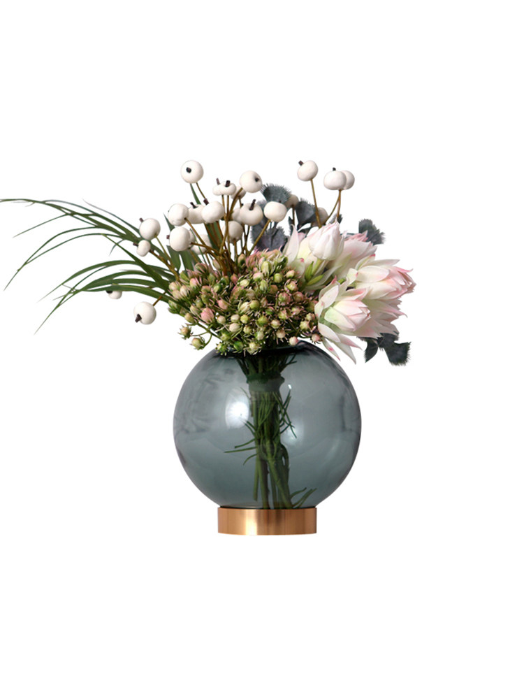 European-style modern artificial flowers fake flowers gold-bottomed spherical glass vase set designer dining table light luxury floral decoration