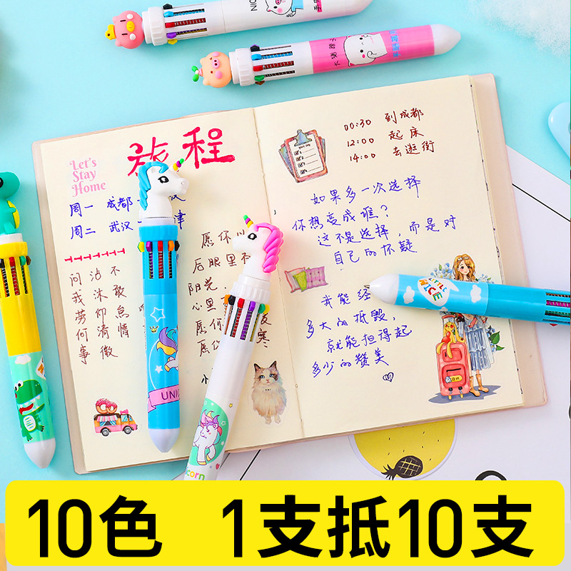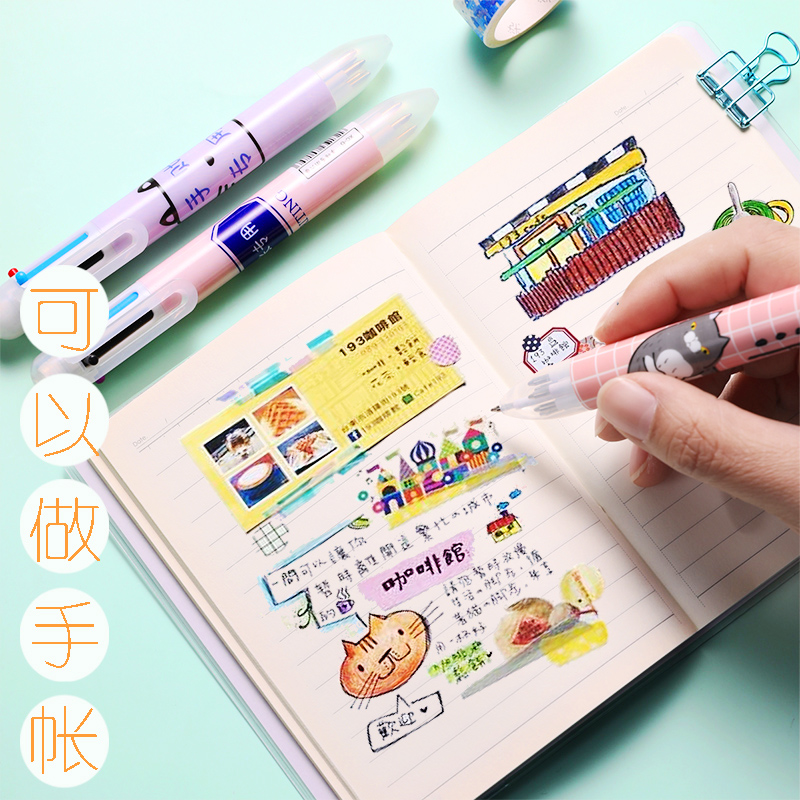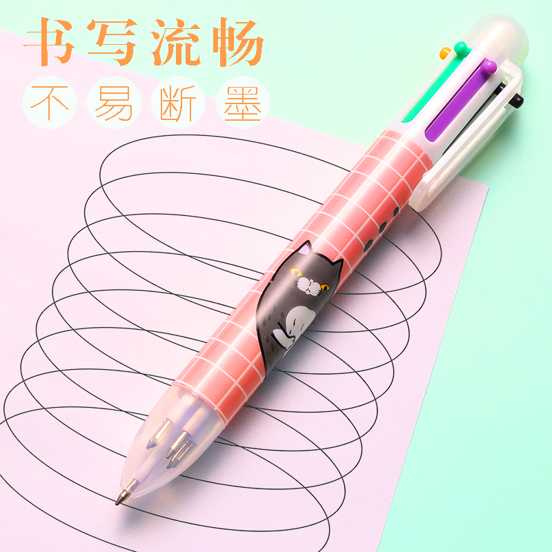 Multicolor Ball Pen press 0 5 Six colors Atom Pen Cute Cartoon Teen Creative 10 Color press multifunction Refill Stationery Rainbow Pen Korea Color Oil Pen Four Color Hand Ledger Special Pen