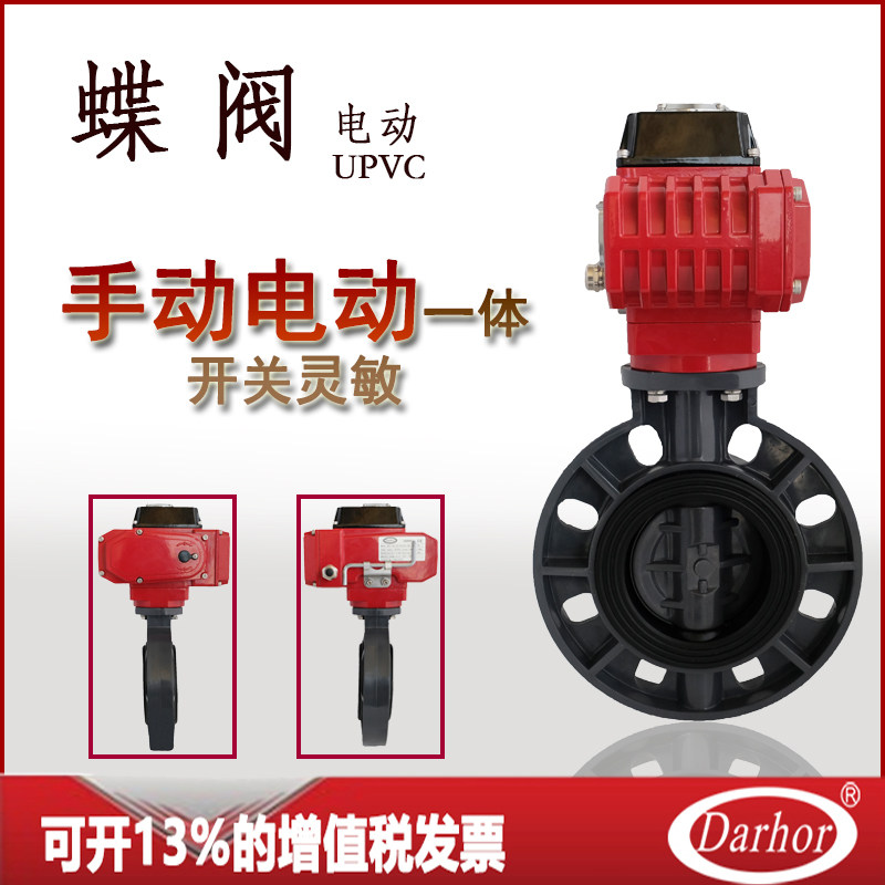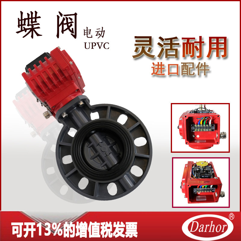 UPVC electric butterfly valve PVC for clip-type plastic butterfly valve is anti-corrosive and acid-DN50 DN50 DN100 DN150