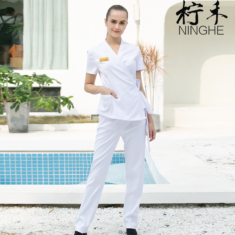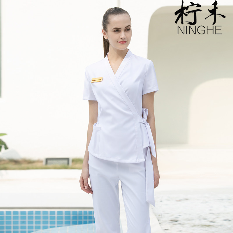 Lemon Grain High-end Beauty Salon Workwear Women Health Museum Technician Wear overalls Beauty Division Costume Short Sleeve Worksuit Suit