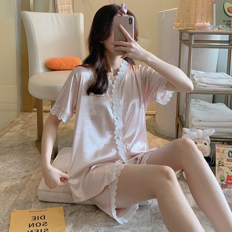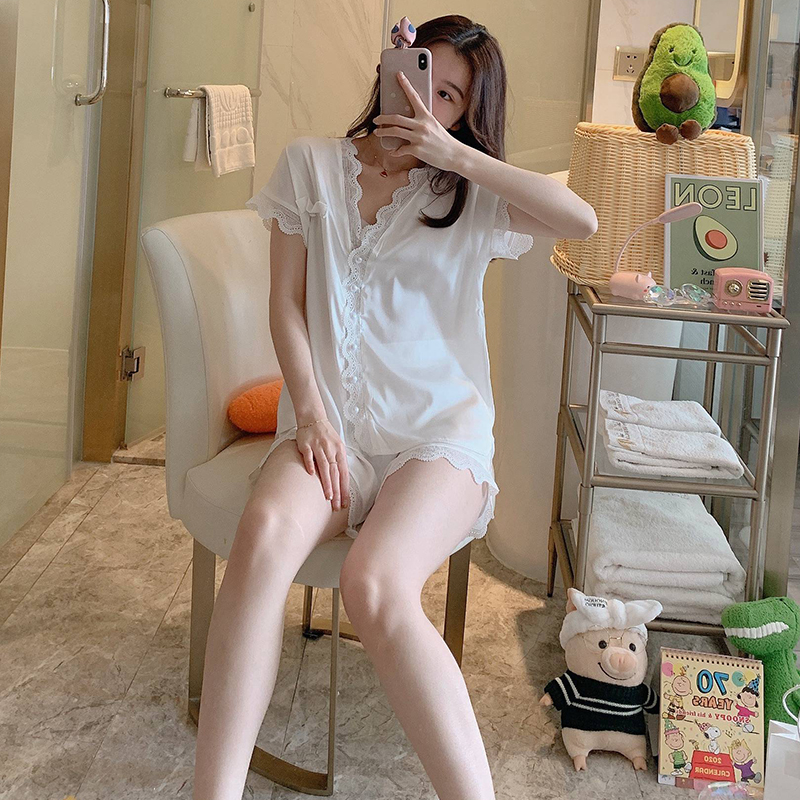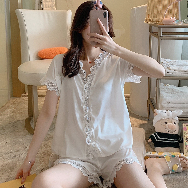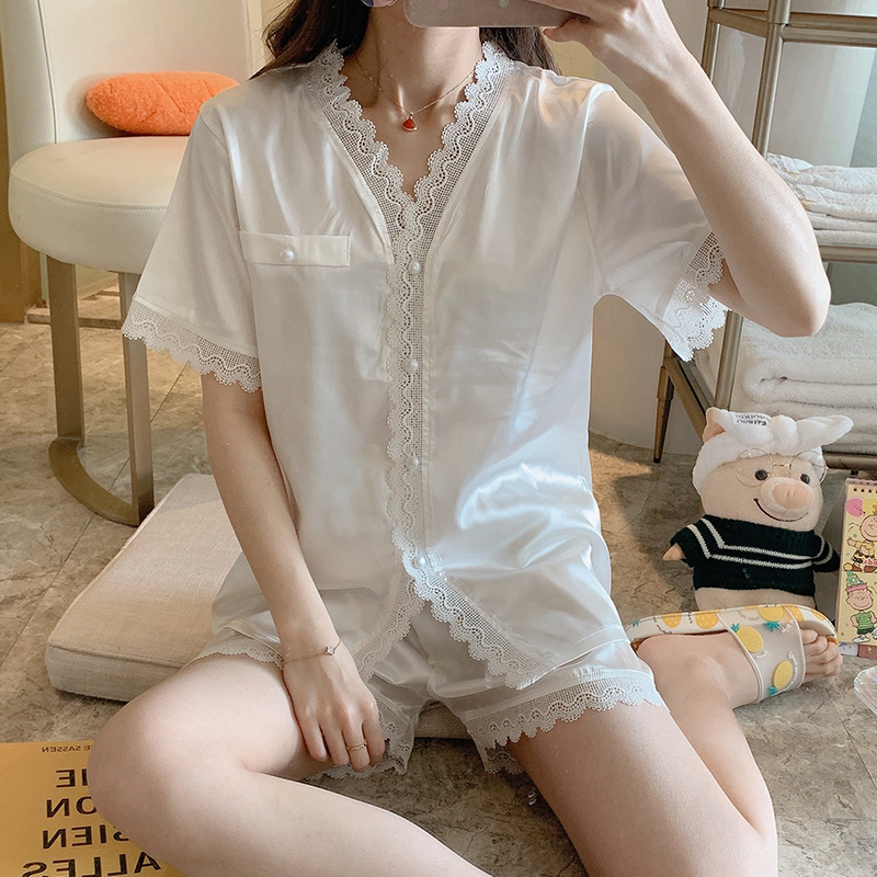 Very fairy pajamas women's summer ice silk sexy short-sleeved suit foreign style age reduction net red hot style white silk two-piece set