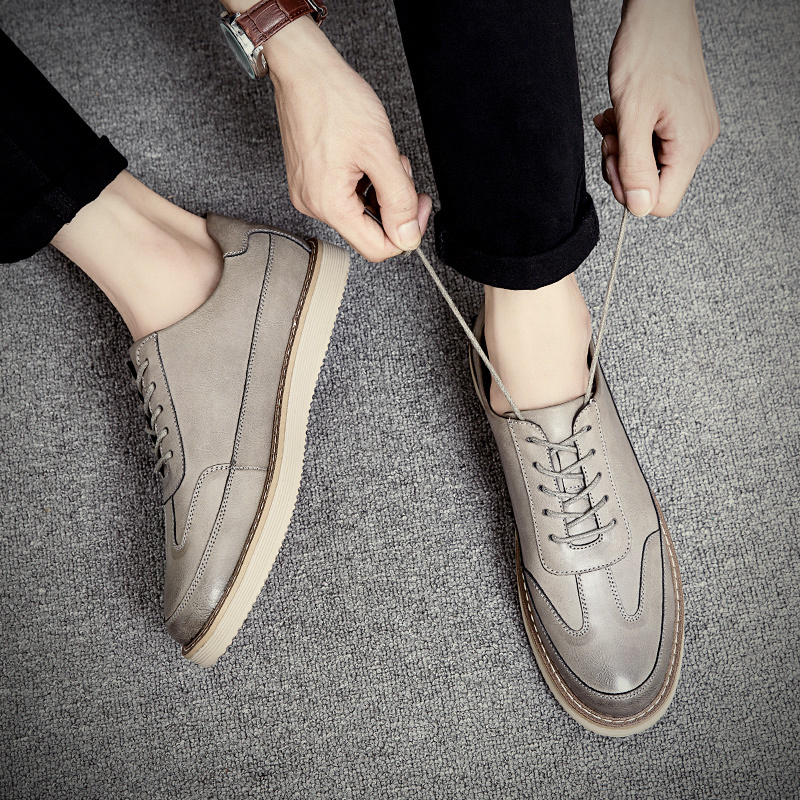 Men's leather shoes new Korean version trendy Bloc genuine leather business casual dress leather shoes 100 lap Inn wind plate shoes