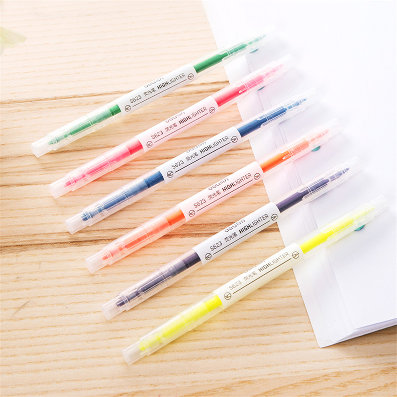 Able double head fluorescent pen (6 color suit) marked light color series students use tasteless candy color notes pen color coarse scratches focus sparkling silver light silver light fluorescent pen 1 set of wholesale 1