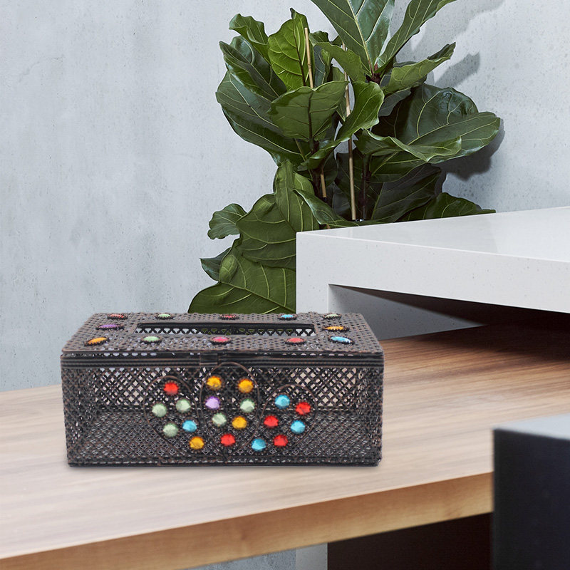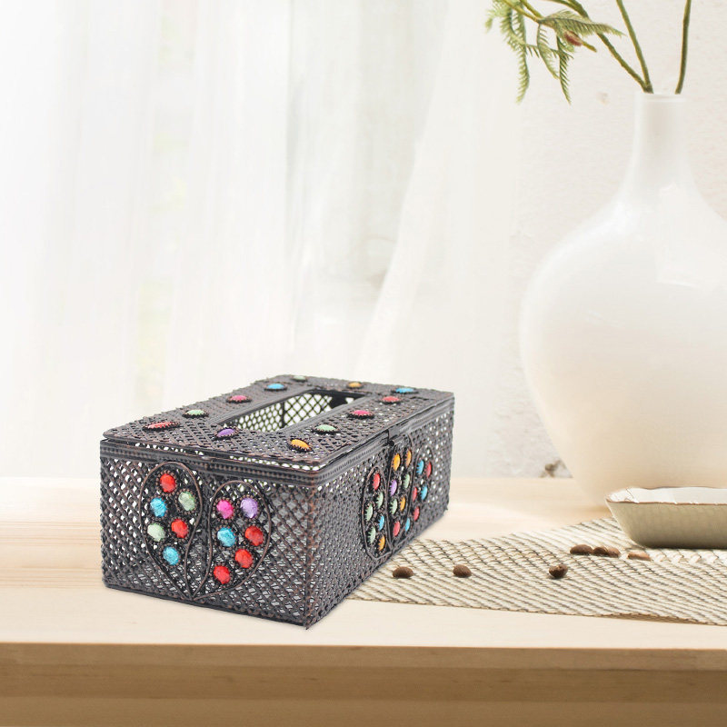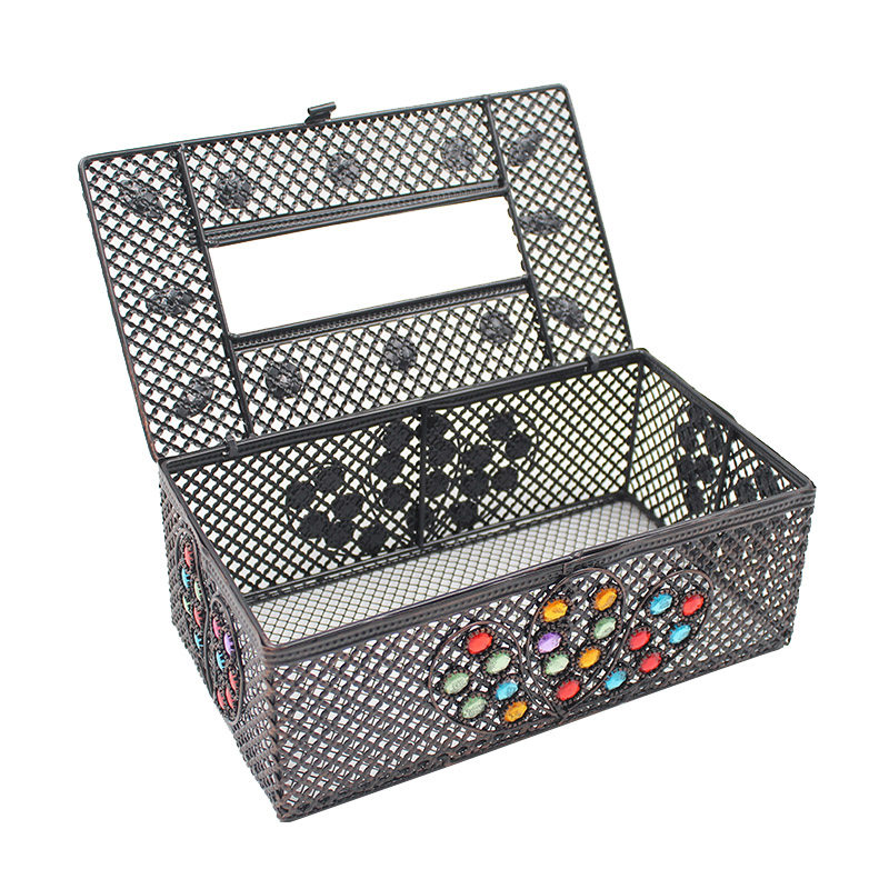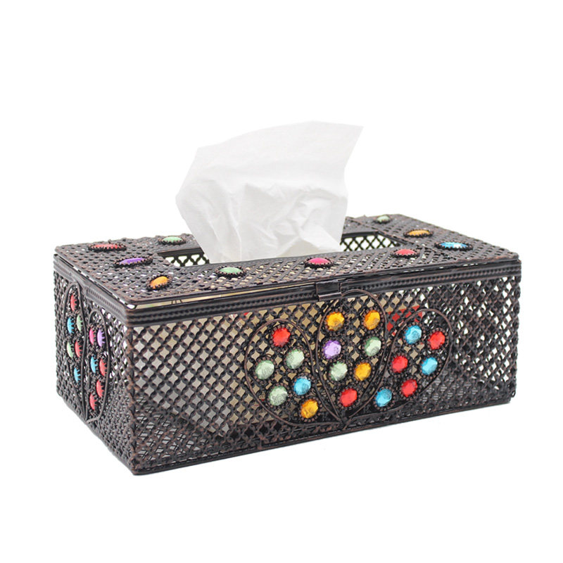 Nordic wrought iron tissue box pastoral ethnic retro dining room decoration features household creative handmade napkin toilet paper box