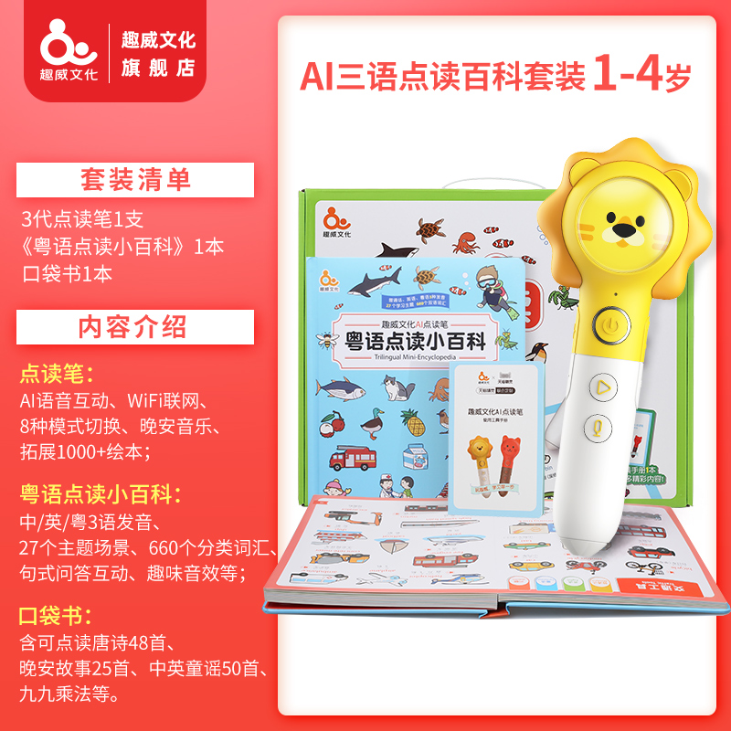 Fun Wei point reading pen three or four generations of picture books Intelligent General English enlightenment Cantonese Children's bilingual learning early learning machine