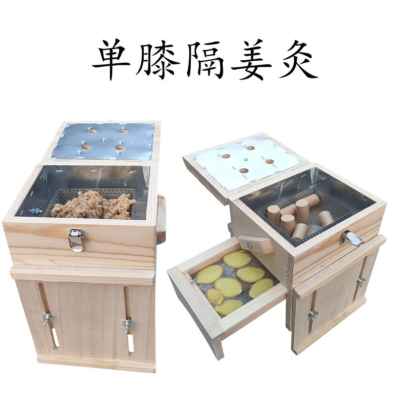 Wooden single knee ginger moxibustion box knee leg moxibustion device Zusanli Fenglong portable moxibustion arm fumigation wormwood