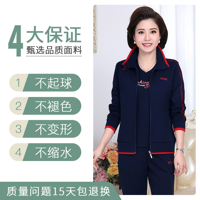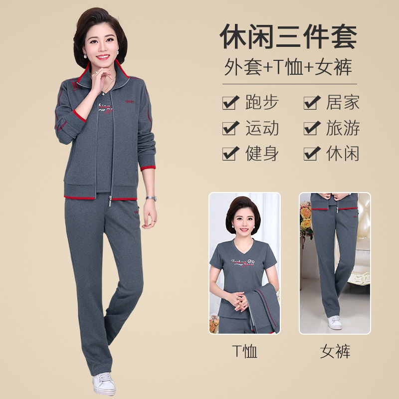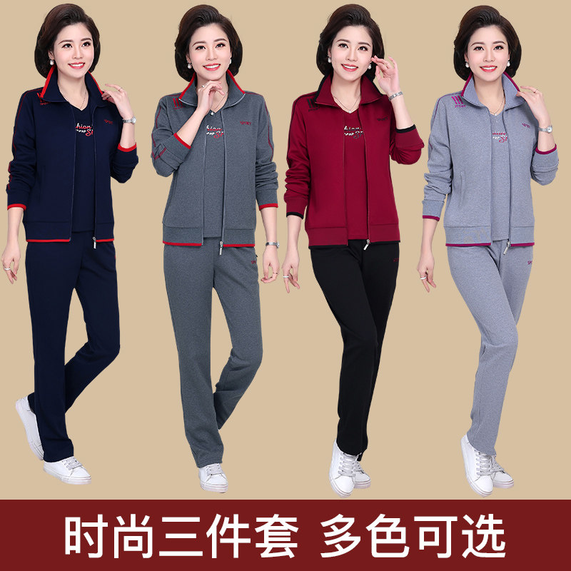Fat mom plus fat plus size spring coat three-piece set middle-aged women's sports suit 40-year-old 50-year-old clothes