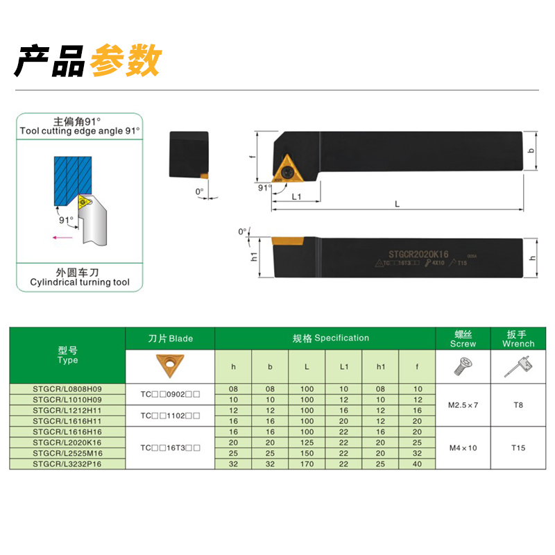 STGCR1212H11 (12 square knife) with TCMT11 blade STGCR1616H11 (16 square knife) with TCMT11 blade ST
