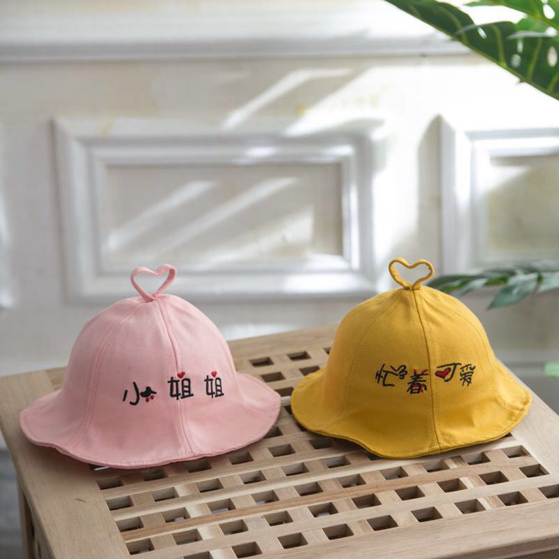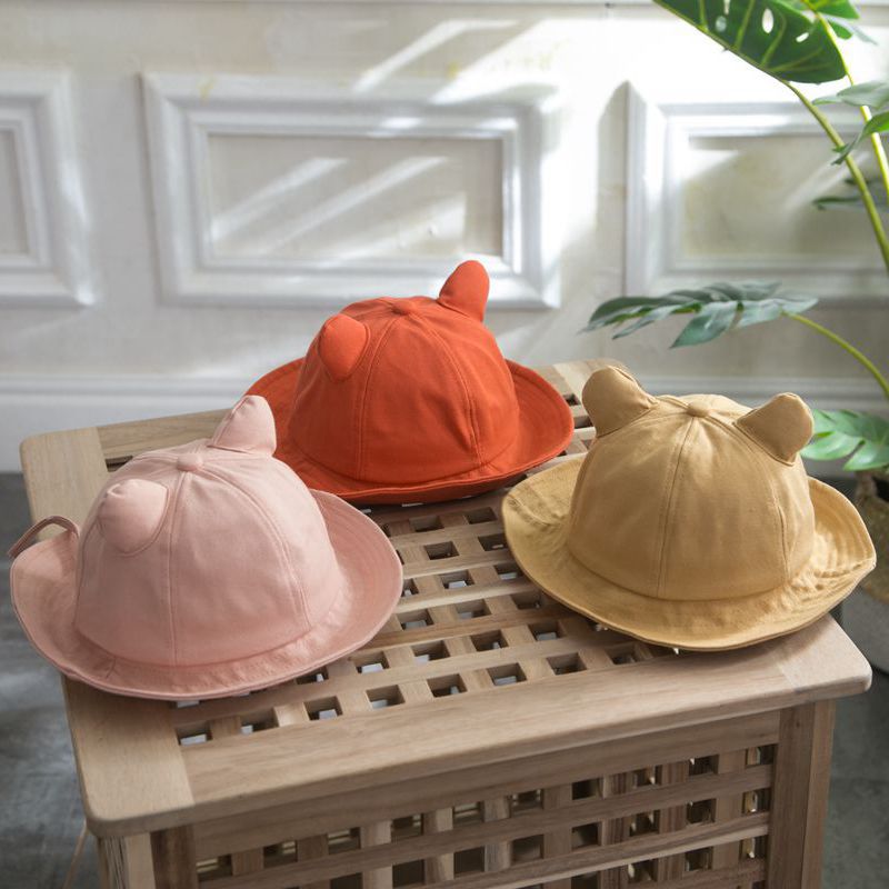 Spring and autumn solid color cat small tail embroidery children's fisherman hat travel foldable fabric large edge sunshade hat
