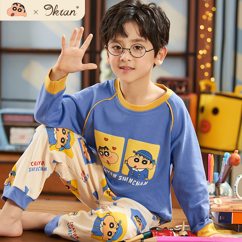 Crayon Small New Boy Sleepwear Spring Autumn Season Long Sleeve Pure Cotton Large Boy Children Great Boy Full Cotton Home Suit Suit