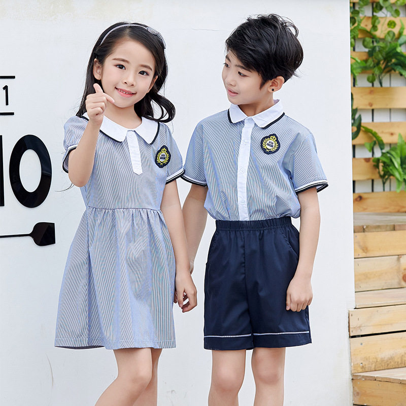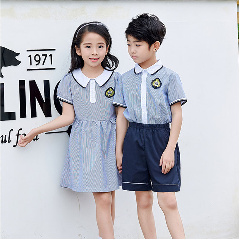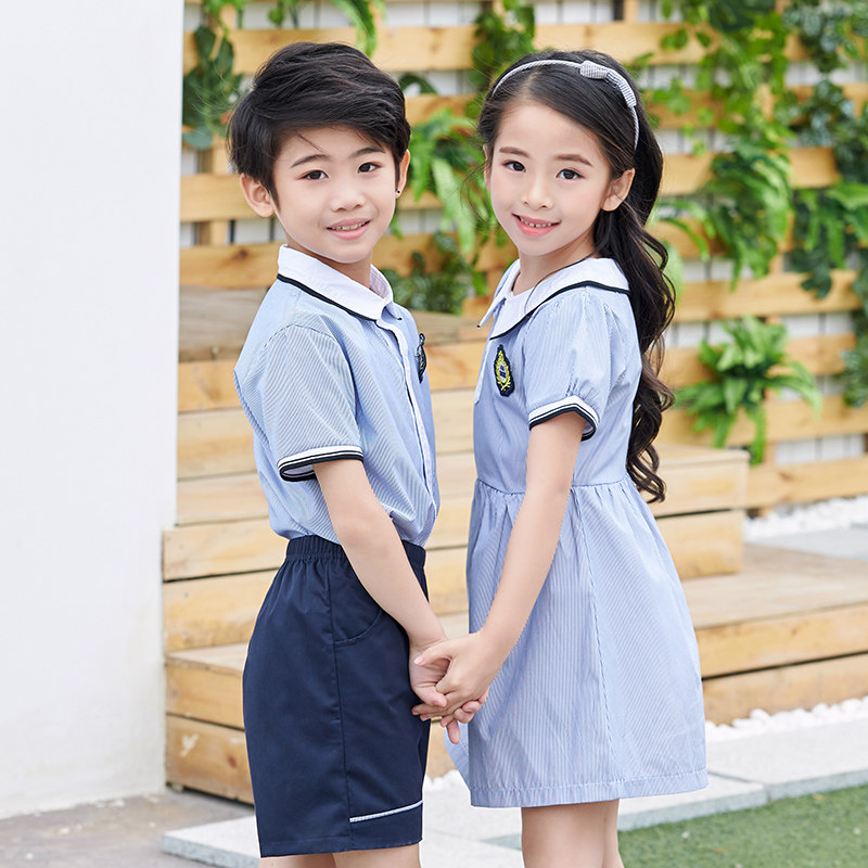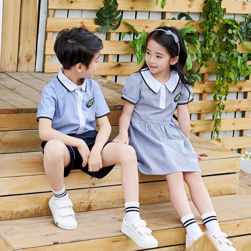 Kindergarten summer clothing English style children's class clothing lapel short sleeve suit primary school uniform graduation performance clothing