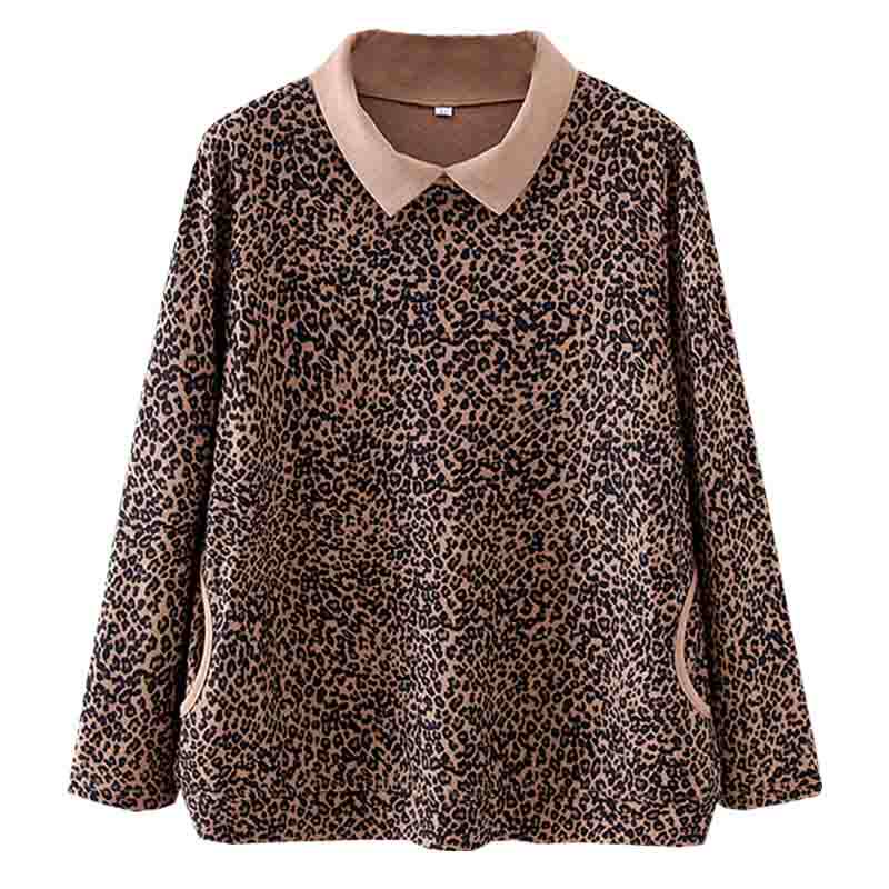 Middle - aged mother wears a clothes in the spring and fall of 2020 BAO WEN long sleeve blouse cotton knitting temperament large T - shirt