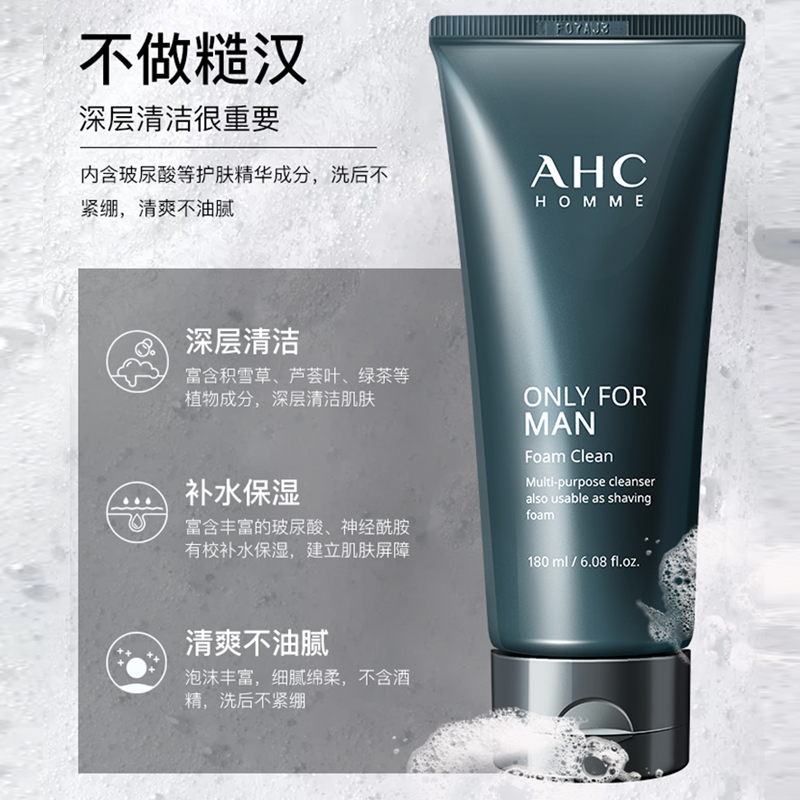 Korea AHC men's oil control to remove blackheads and acne special facial cleanser moisturizing, moisturizing, removing mites and removing oil 180ml