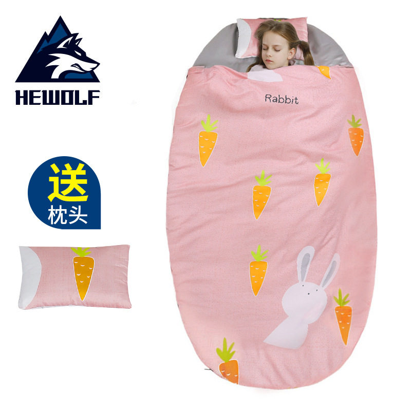 Male wolf outdoor camping children's cartoon anti-kick by male and female children spring, summer, autumn and winter thick warm and cold sleeping bags