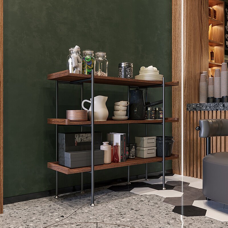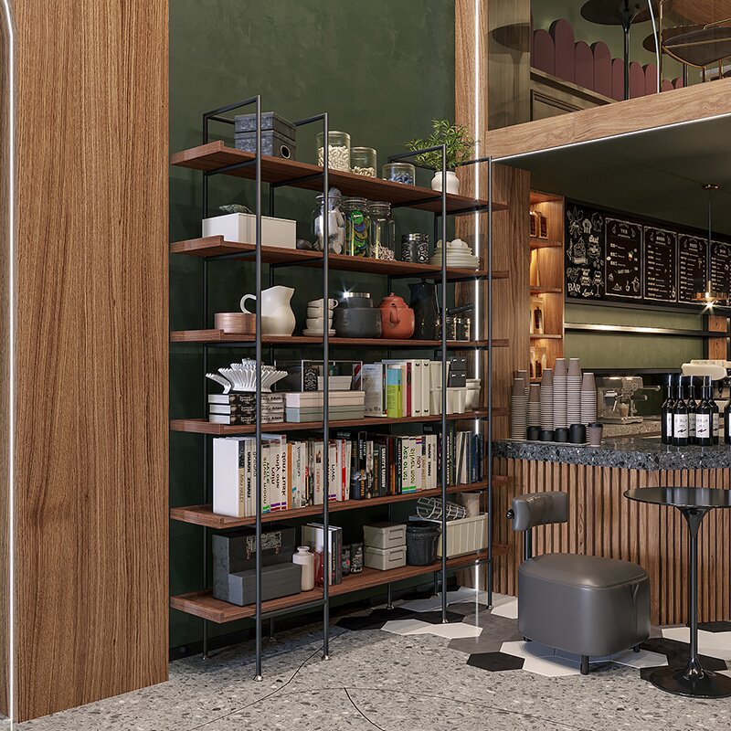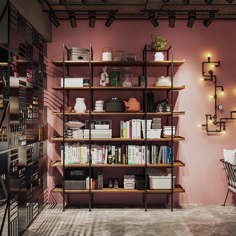Nordic bookshelf shelf floor living room iron multi-layer partition display rack simple solid wood bookcase loft shelf