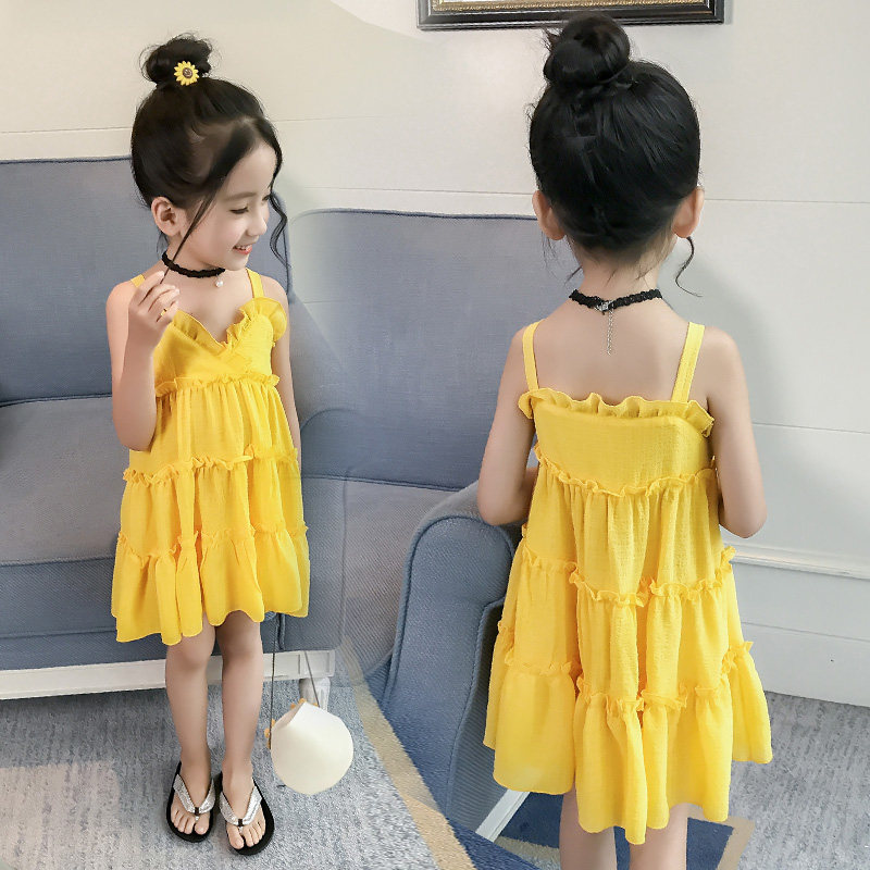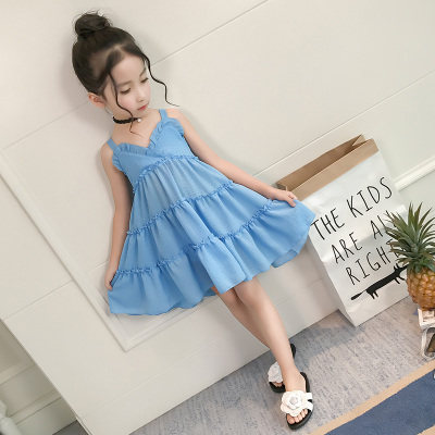 Girls Dress Summer Dress 2021 New Children Summer Sling Dress Girls Red Beach Princess Skirt