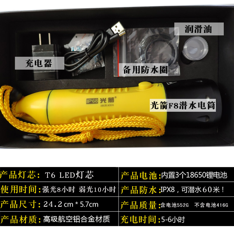 Light Arrow F8 Professional Diving Flashlight LED Intense Light Charging Outdoor Waterproof Super Bright Far Shot Underwater Floodlight
