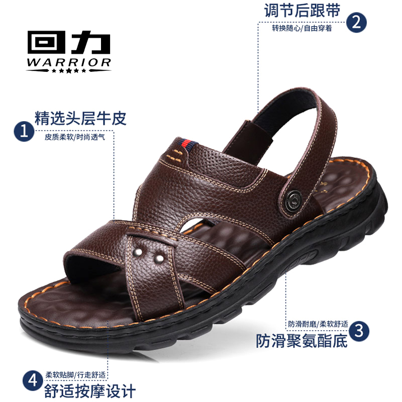 Pull back sandals men's 2022 summer new leather beach shoes trendy men's soft bottom non-slip leather sandals slippers dual-use