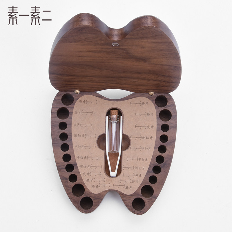 Walnut tooth-shaped deciduous tooth box zodiac custom (take a picture and note the zodiac pattern you want)
