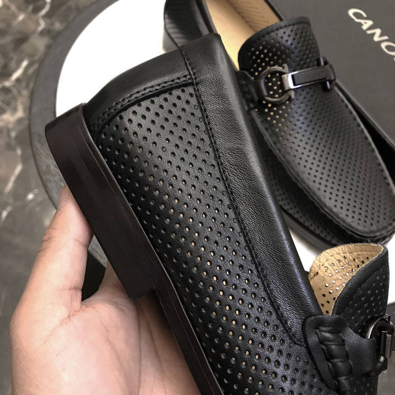 2021 autumn new Doudou shoes men's shoes genuine leather shoes hollow breathable Korean style trendy casual slip-on all-match lazy people