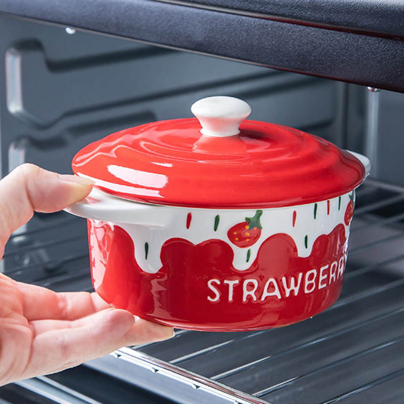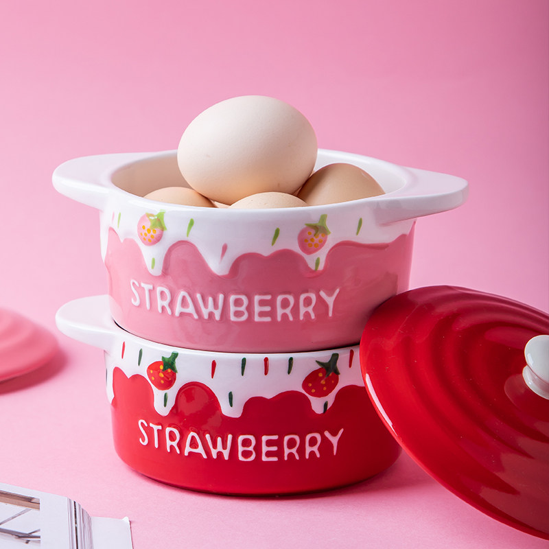 Steamed Egg Custard Bowl Baking Bowl Baking Household Children's Ceramics Cute Baby Steamed Egg Bowl Strawberry Bowl Cute Girl Heart