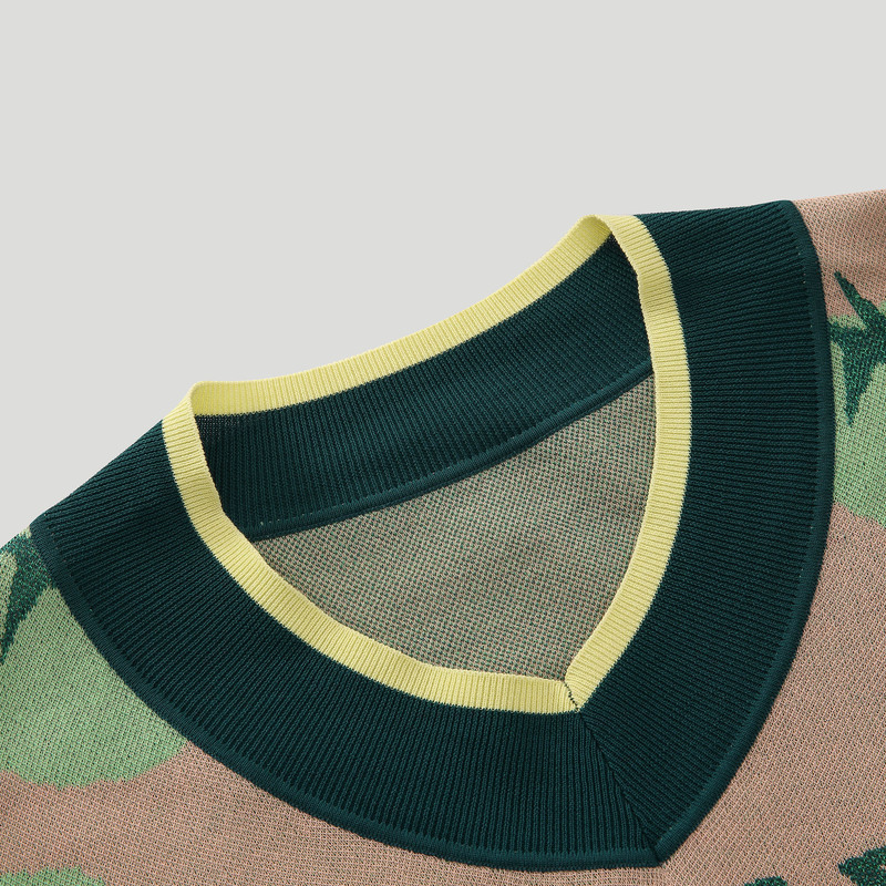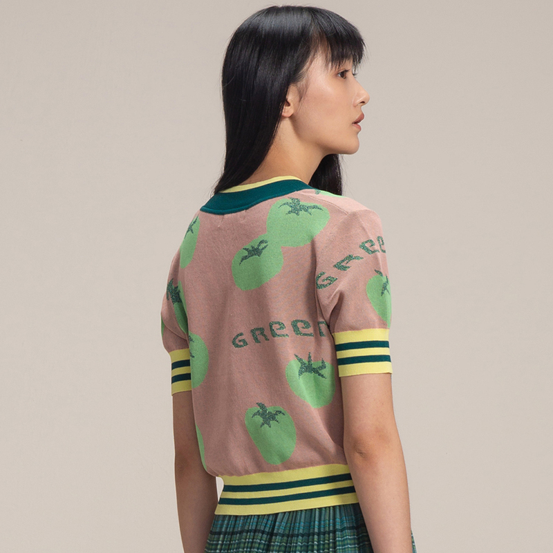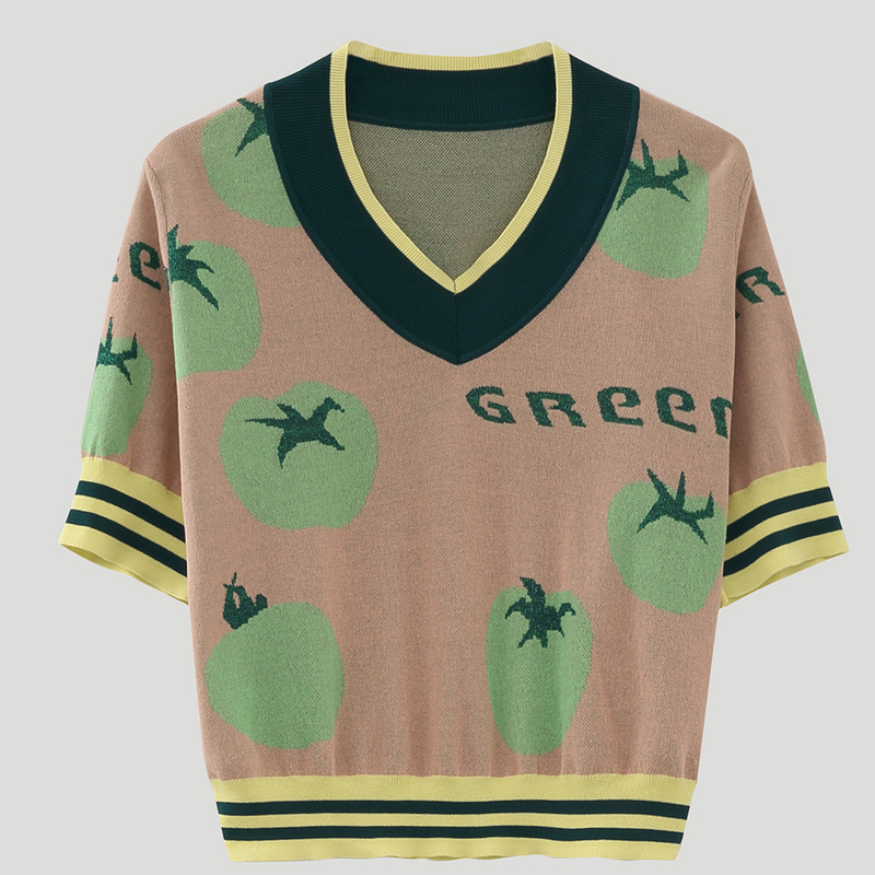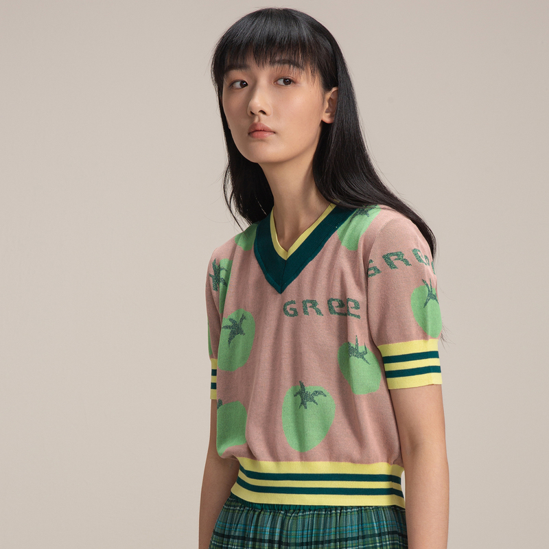Summer new sports striped tomato jacquard short-sleeved thin wool sweater women BDN7SD944 seasoning