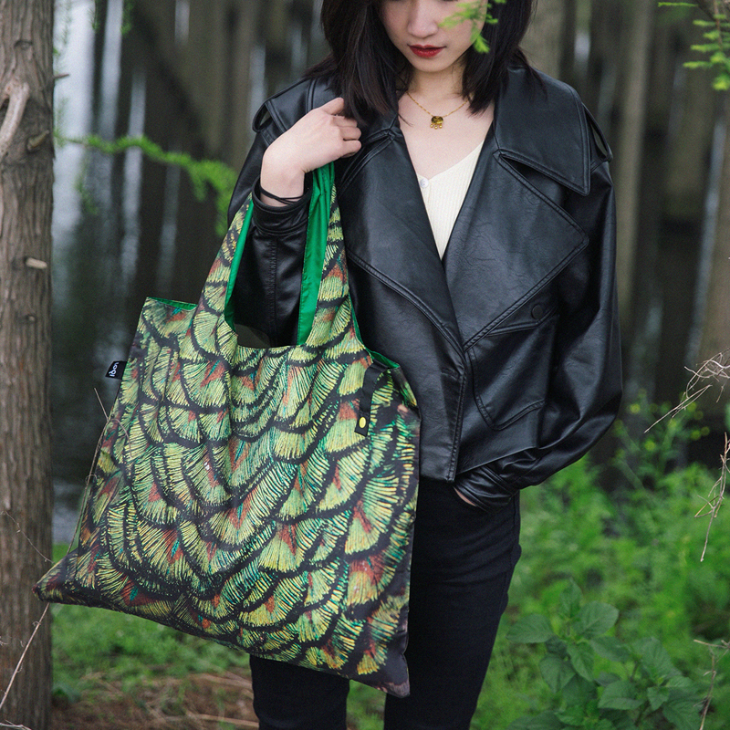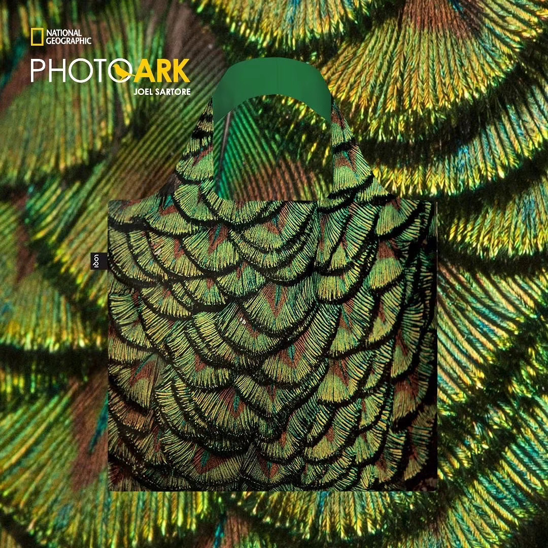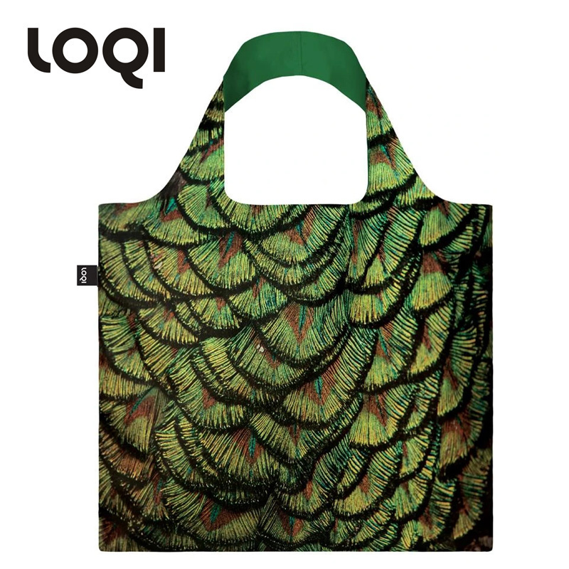 Loqi Eco-friendly Shopping Bag with Animal Pattern Shopping Bag Art Fashion Woman Bag Lightweight Fitness Travel Blue Peacock