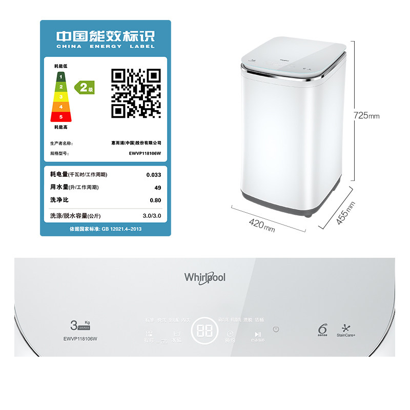 Whirlpool 3KG mini washing machine small baby children's underwear automatic household wave wheel EWVP118106W