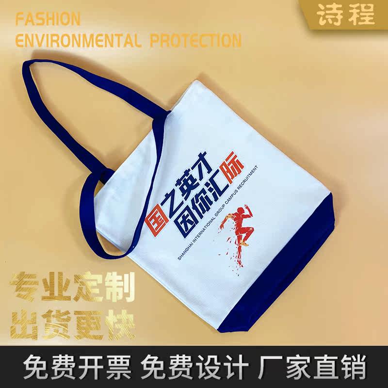 Canvas Bag Custom Logo Motif Propaganda Hand Bag Son Environmentally Friendly Shopping Bag Printed Cotton Containing Cotton Fabric Bag Customisation