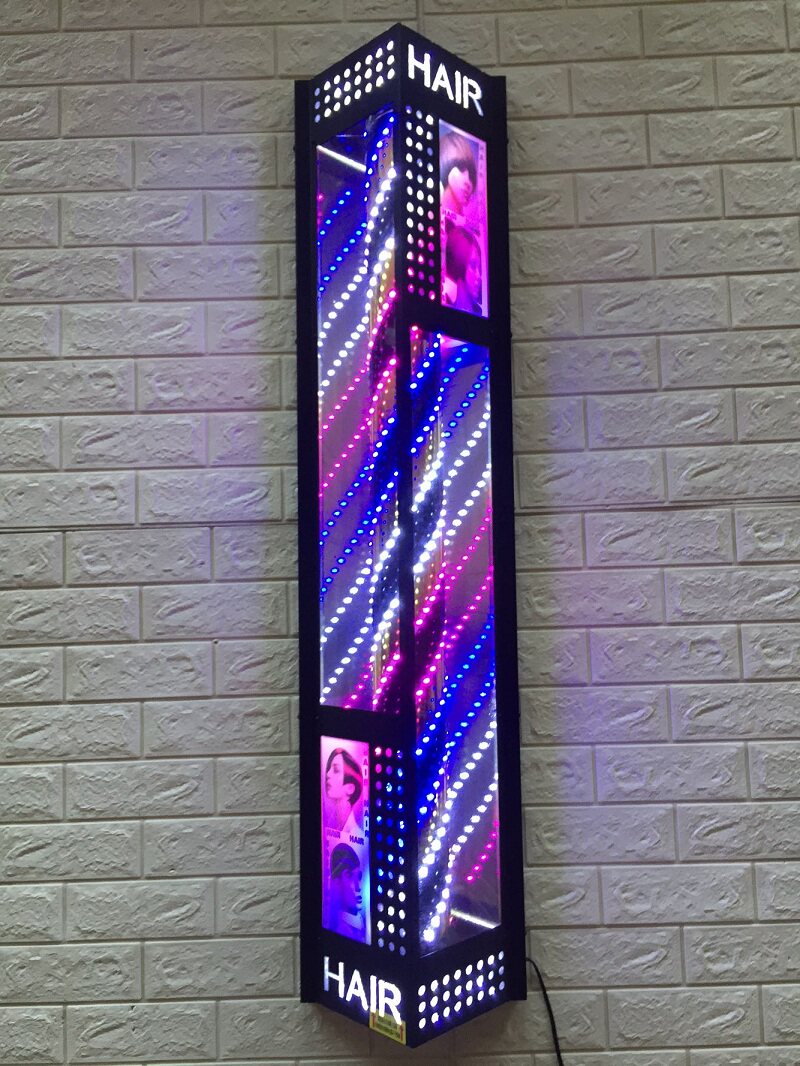 Hair turn light triangle new hanging outdoor waterproof hair salon light box led hanging wall rotating barber shop logo light